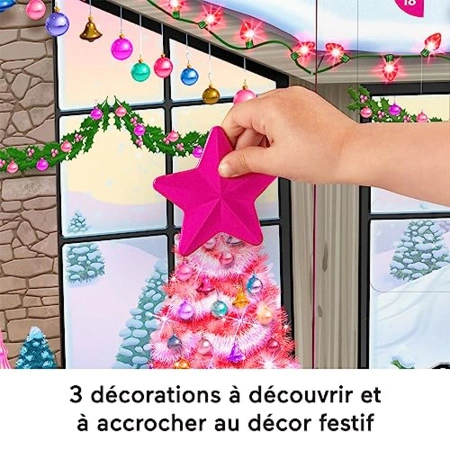 Ce calendrier comprend 24 pièces sur le thème des fêtes, avec des figurines Barbie et des accessoires à découvrir chaque jour du 1er décembre jusqu'à la veille de Noël. Le décor chalet de ski chic de Barbie inspire de belles histoires festives pour les enfants.